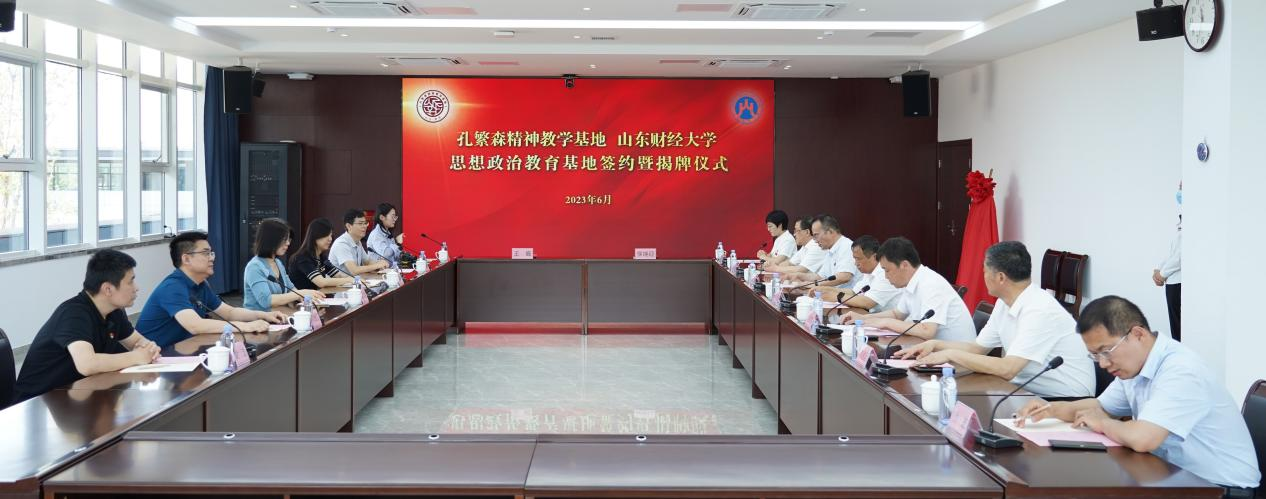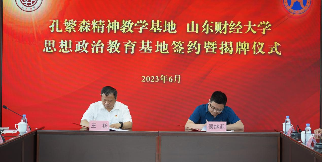 6月6日上午,山东财经大学马克思主义学院和聊城市孔繁森精神教学基地(孔繁森同志纪念馆)举行了“山东财经大学思想政治教育基地”签约暨揭牌仪式。山东财经大学马克思主义学院院长徐莹、研究生院副院长刘若斌、马克思主义学院副院长侯继迎,孔繁森精神教学基地服务中心主任王巍、副主任孔宪军等出席活动。