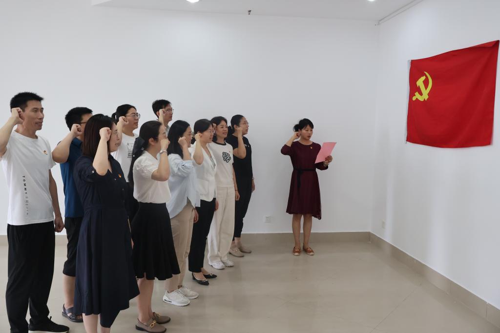 会后,石伟带领马克思主义学院行政党支部全体人员和仁合社区参会人员重温入党誓词。全体党员精神饱满,面向党旗,高举右拳,作出忠诚于党的庄严承诺。