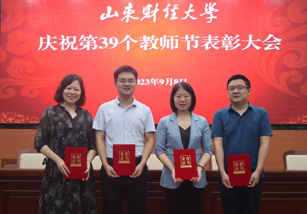 在表彰会上,我院多位教师获得表彰。徐莹入选山东省理论人才“百人工程”,获2022年度“山东学校思政课教师年度人物”表彰;王广获山东财经大学2023年度优秀教师表彰;郭小丽获山东财经大学2023年优秀工会工作者表彰;侯继迎获山东财经大学2023年研究生招生考试先进工作者、2023年度山东财经大学优秀科研成果奖一等奖表彰;范子谦获第二届全省学校思想政治理论课教学比赛一等奖以及山东财经大学2023年师德师风先进个人表彰;王真真获第二届全省学校思想政治理论课教学比赛一等奖表彰。