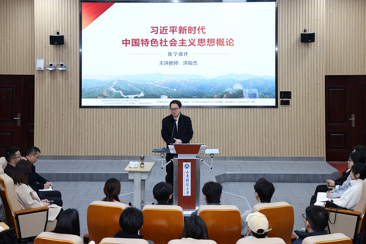 3月19日上午,校长洪俊杰教授走进燕山校区逸夫楼103教室,为学生讲授了经济专题之“推动高质量发展”,这是学校认真落实上级要求,开好讲好《习近平新时代中国特色社会主义思想概论》课的教学安排和具体举措。