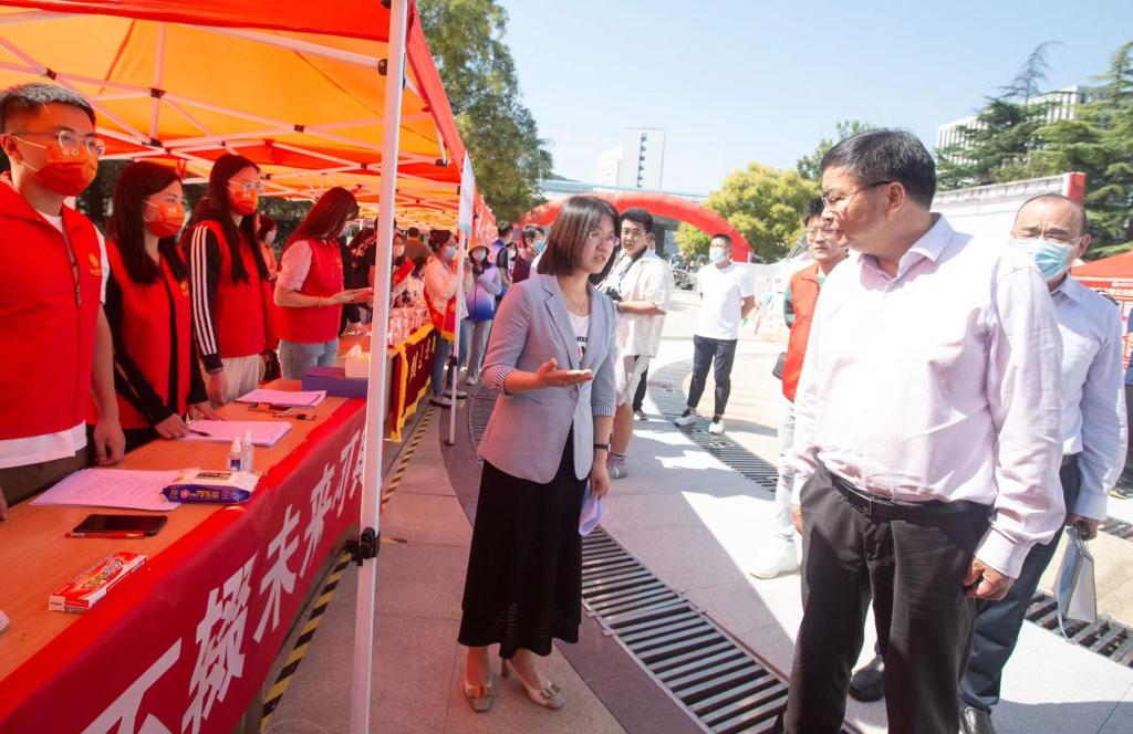 报到期间,校党委副书记、校长赵忠秀一行来到马克思主义学院新生报到点,了解2022级研究生新生报到住宿以及就餐情况,亲切慰问服务在一线的迎新工作人员并与徐莹院长就学院新生情况、毕业生就业情况等方面进行恳谈。